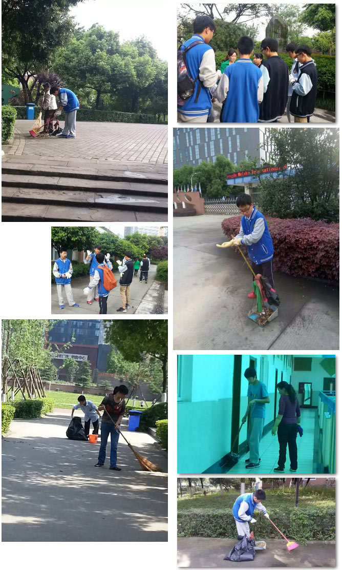 7點45分,清潔小分隊到行政樓前領取任務并互相加油。孩子們戴上了手套,取下了背包,拿起撮箕,搭上帕子,舞動掃帚,拜師學習。師傅說:腰彎下去,再使點勁!師傅說:認真!同學們不會笑你,只會佩服你!師傅說:不能帶著水杯掃地……