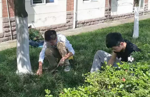 但對于修剪工作的孩子們來講,眼里只有旁逸的枝條。對于除草工作的孩子來講,手上只有各種野草。上午的露水打濕了鞋褲,下午的驕陽曬黑了臉龐。