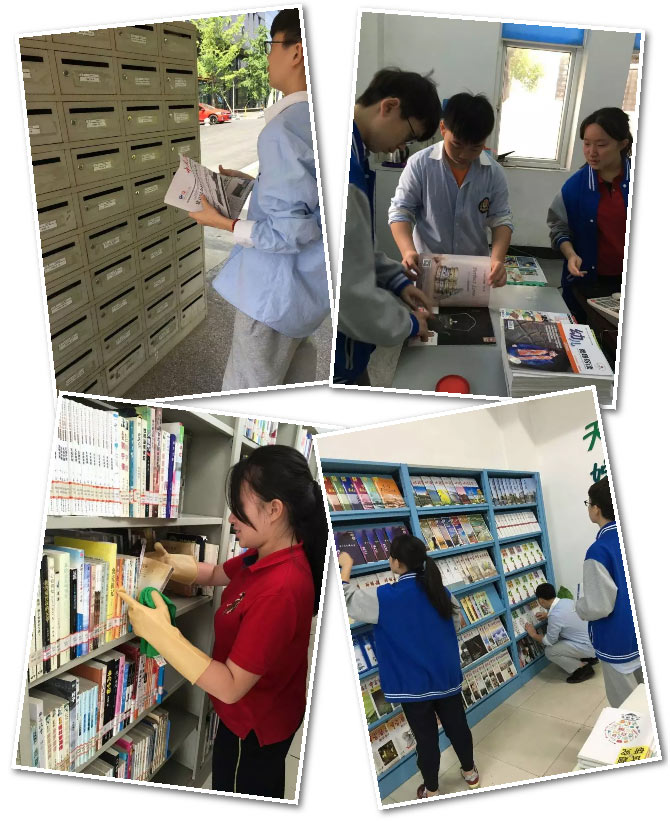 師傅教會了各種野草的名稱:這是蒲公英,那是車前草……這些師傅每天精心修剪校園中的一草一木,把校園中的草木看作自己的孩子。8點半,圖書館工作的三個孩子開始了他們最為繁瑣的工作。清潔,報紙分類投遞,雜志清理分區擺放,書架整理,接待前來閱讀的融合部學生……