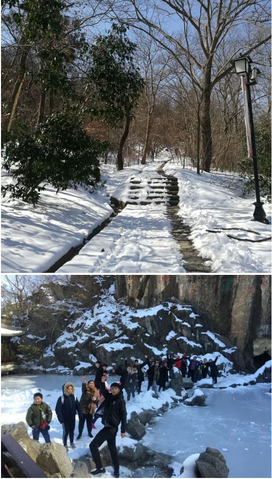 抵達(dá)江南的第一日,我們便急著登高一覽。瑯琊山上的積雪很多,我們興奮極了,玩得不亦樂乎之際,“峰回路轉(zhuǎn),有亭翼然臨于泉上者,醉翁亭也。”于是雪中高誦《醉翁亭記》,天朗山俊,風(fēng)霜高潔,頓感歐陽修之所感。