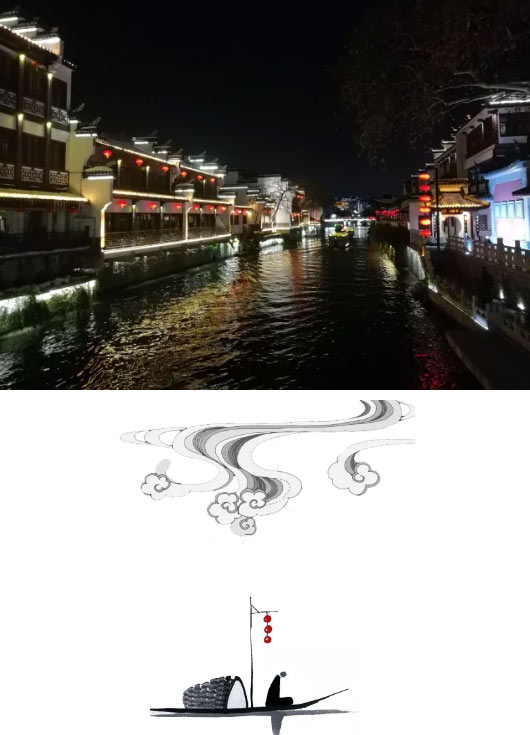 入夜,槳聲燈影里的秦淮河令人沉醉。我們扣弦而誦《泊秦淮》,