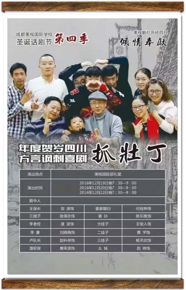 這是美視劇社成立四年以來,第二次排演全本戲,同時也是參演人員最多的一個戲。共12名演員,7名教師和5名學生。最小的學生演員是小學三年級的,最大的學生演員是高中三年級的。大多數(shù)學生是第一次演話劇。