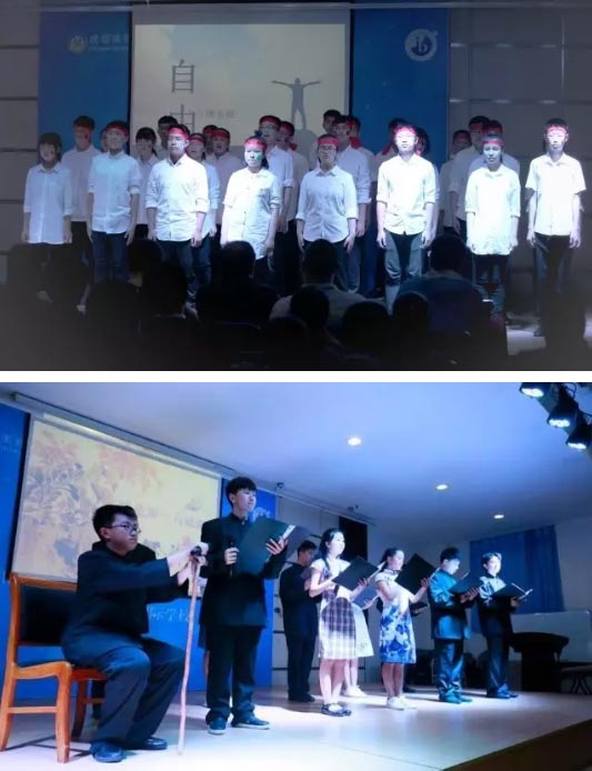 另外,還有全班登臺,氣勢磅礴的初二五班帶來的《自由》;初二二班婉轉清和的《就是那一只蟋蟀》,孩子們以角色扮演的朗誦,述說了濃濃的鄉愁。