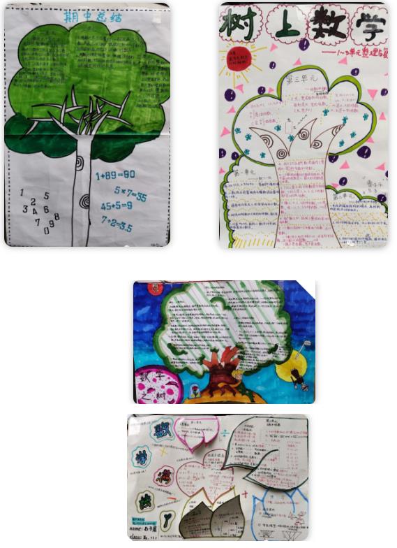 五年級的哥哥姐姐將知識點融于樹葉、水滴或其它基本形狀之間,構(gòu)建起清晰的知識網(wǎng)絡(luò),在奇妙的樹干與枝丫間探索數(shù)學(xué)的奧秘。