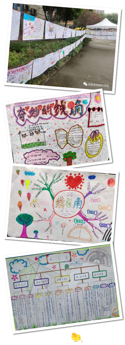 點動成線,線動成面,面動成體。平面幾何與立體幾何都離不開“線與角”這些基本的幾何元素。四年級的小朋友充分展示了他們的數(shù)學(xué)歸納能力,將知識點生動有趣地展現(xiàn)在小報上。