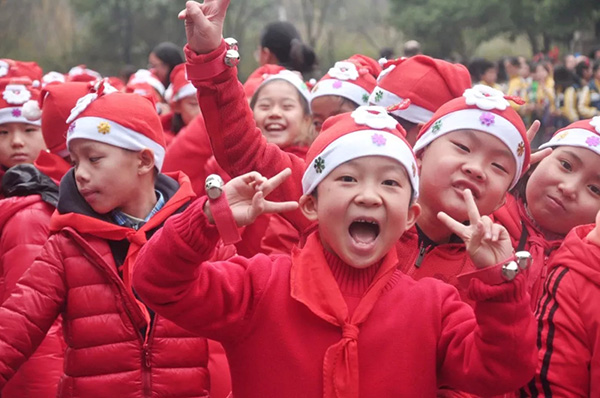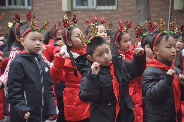 開幕式上,一、二年級的乖乖們頭戴鹿角,歡快地演唱了”Merry Christmas”,老師們都被他們認真可愛的樣子“萌”到了!
