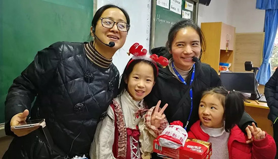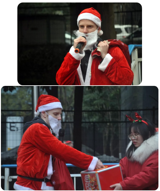 全校合唱“Santa Claus is coming to town”的時候“圣誕老人”帶著禮物出場了,全場沸騰了!他告訴孩子們,他帶著禮物從遙遠的北極趕來,給今年最努力的孩子分發禮物。隨后他從“抽獎箱”里抽取了2個幸運班級,把禮物送給了他們。獲得禮物的孩子們太開心了!