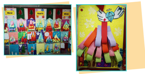 再來看看二年級的乖娃娃們做的漂亮的英文賀卡。有的說:“希望我明年成績更優秀”;也有的說:“祝愿大家新的一年里身體更健康”;還有的說:“希望圣誕老人能送我一只可愛的寵物狗狗”……字里行間寄托的是對新年的美好祝愿。