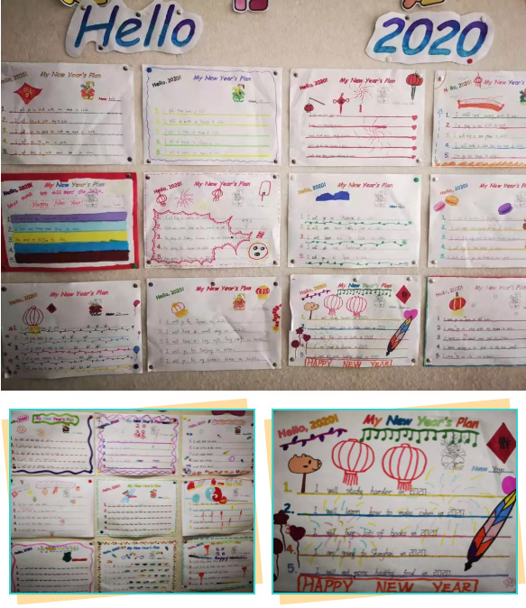 五年級孩子們的新年小練筆也很有特色。他們在英語課上制定了新年學習和生活的計劃。一句“Hello,2020”,在輕松愉快的氛圍里迎接新的一年的機遇與挑戰。相信在新的一年里我們的乖娃娃會更上一層樓。