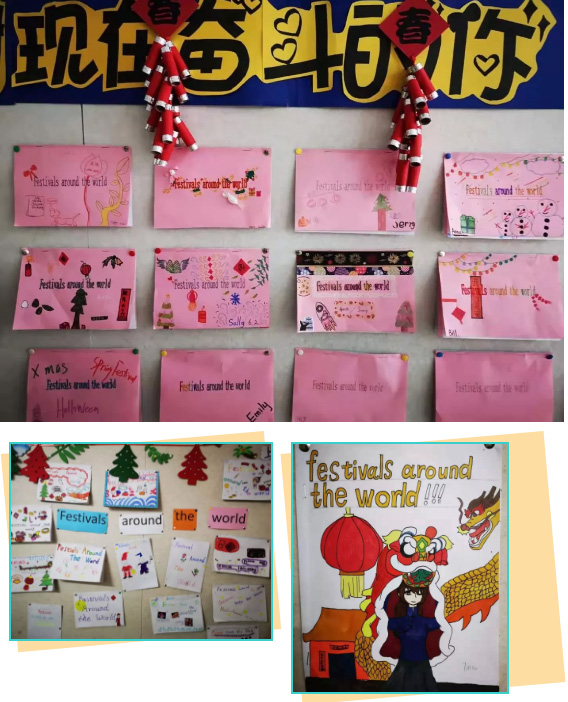 再來看看三樓的樓道外墻。六年級的孩子聚焦國際文化與國際理解,對比中西方各種節日活動。既了解咱們中國的傳統節日和習俗,也關注其他國家的特色節日,并寫出自己的思考與見解。