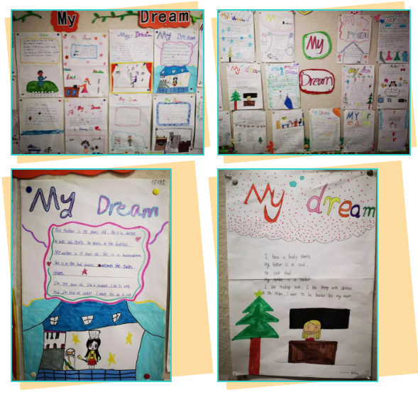 最后是四年級乖娃娃們的英文作品——《My dream》。孩子們用英文寫出了自己的新年夢想。夢想是一縷陽光,驅散孩子們前行道路的陰霾;夢想是航燈,指引孩子們前進的方向。相信孩子們一定會在不懈的努力下實現自己的夢想。