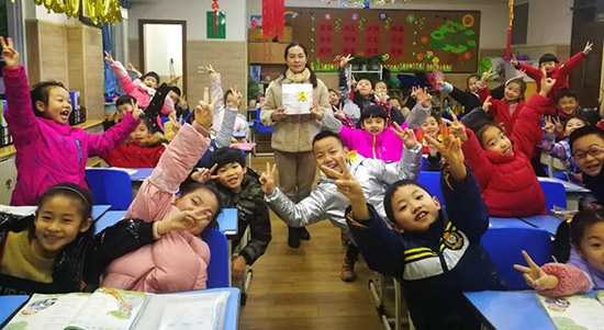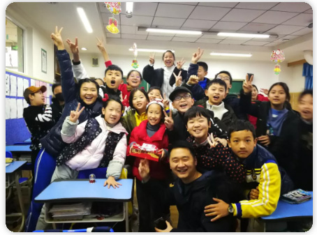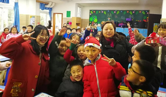 最后的環節更是令人激動不已:由外教Mr. Spencer裝扮的Santa Claus會從全校19個班里,每次抽取出2--3個幸運班級,并派出“圣誕小精靈們”為這些幸運班級的孩子們送去甜蜜的糖果。小小的糖果,吃在嘴里,一直甜到了心坎兒里。