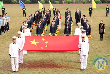 全場起立高唱國歌                                                 中學部副校長王嵐宣布運動會開幕