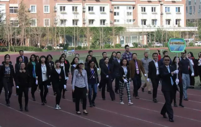 壓軸出場的教師方隊,邁著整齊、干練的步伐閃亮登場,博得了最熱烈的掌聲。今年的趣味賽由“人體呼啦圈”和“拔河”兩個比賽組成。