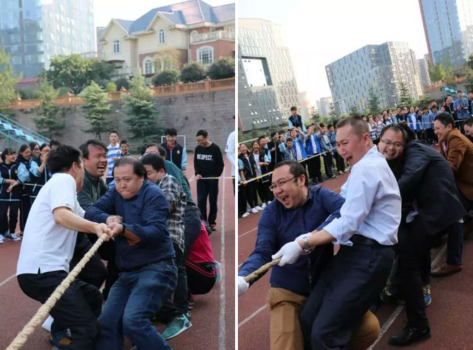 拔河比賽是力量的較量,初中老師和高中老師分為兩隊展開比賽。在場的學生都為老師們加油鼓勁,而老師們也放下了平時的嚴肅,積極參與到比賽中,使出渾身解數,爭取贏得比賽。100米、200米、800米、跳高、跳遠、接力賽,大家都全身心投入到比賽中,積極為班集體爭得榮譽。