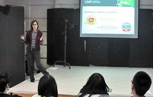 2011年12月15日,美國北德克薩斯大學國際招生部主任Dickie Hargrave女士應邀訪問成都美視師一學校國際項目部并為國際項目部高中生做了一場招生宣講。