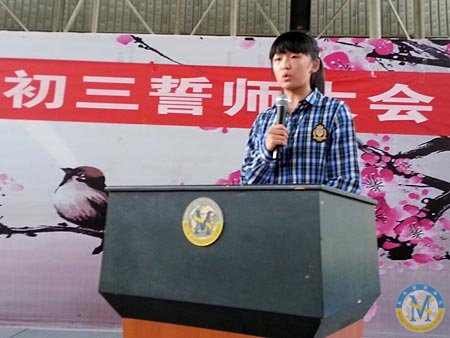 9月14日下午4點,初三年級全體學生在體育館莊嚴宣誓,為了夢想備戰中考。校領導、教師代表、家長代表及學生代表紛紛發言。