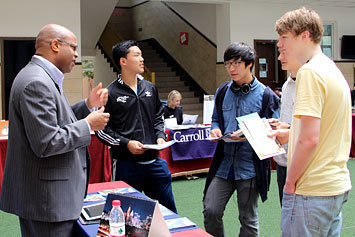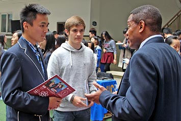 2014年3月26日,27所海外大學招生咨詢會在我校國際項目部舉行。海外大學代表在國際項目部禮堂為同學們做了精彩的招生宣講。我們還邀請了成都美國學校、成都國際學校、樂盟國際學校和美視中美英才班的同學們參加本次咨詢會。同學們現場填寫了報名表并領取了一些招生資料。通過同學們和家長們與海外大學招生代表面對面交談,大家收獲頗豐,受益良多。