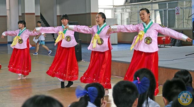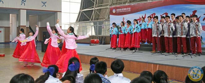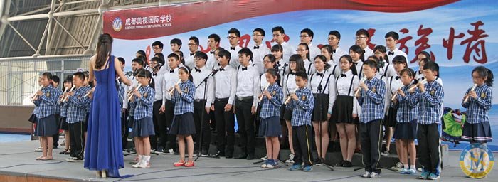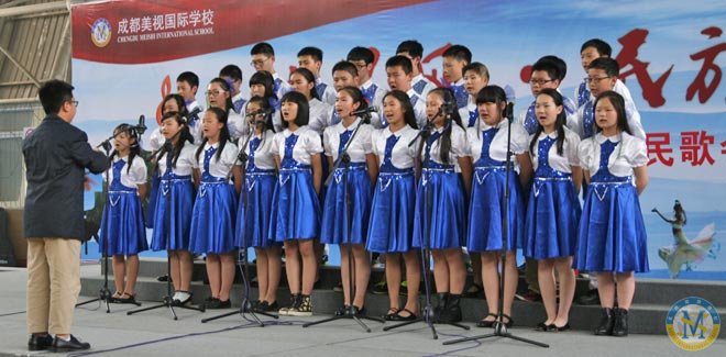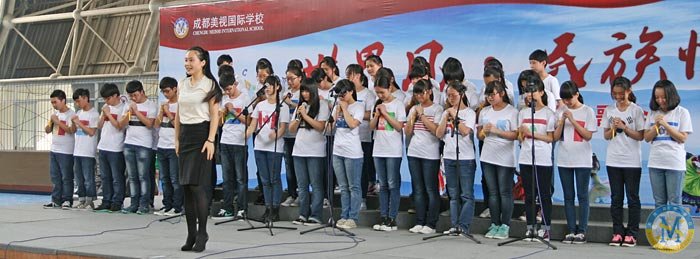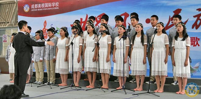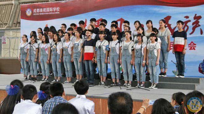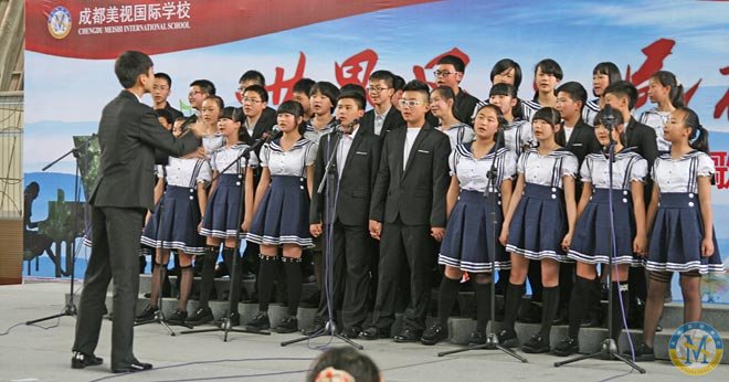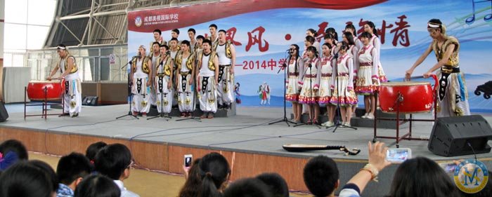 今天是2014.5.9.,中學部“民族風世界風”歌詠會在校體育館登臺亮相,為美視校園又添一景。因為,幾乎是同步的,小學部“生命安全演練”就在體育館外舉行。在同一時間里,館內是歌聲高昂,館外是滅火安全演練。同是周末,全校師生共相長。同是周末,歌聲安全兩相和。