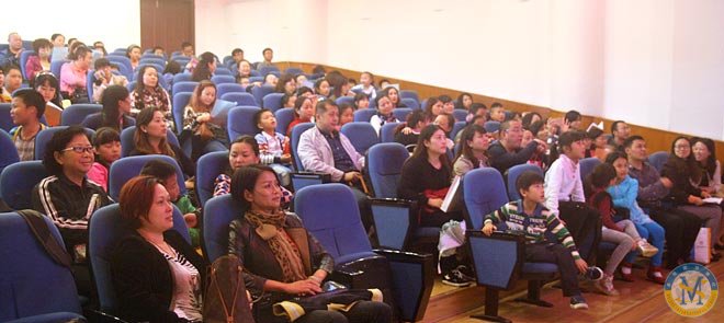 孩子們觀看現場播放的回顧圖片及視頻