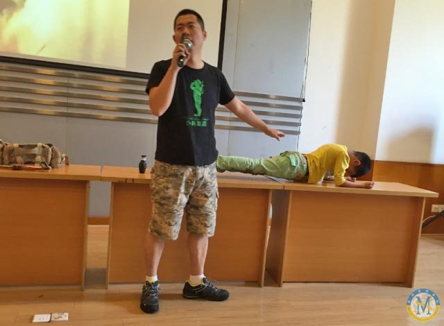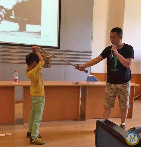 五月初,那位正在減肥的的何為哥哥再一次來到美視,為小學部二年級各班講授了防恐防暴安全自護的相關技能。