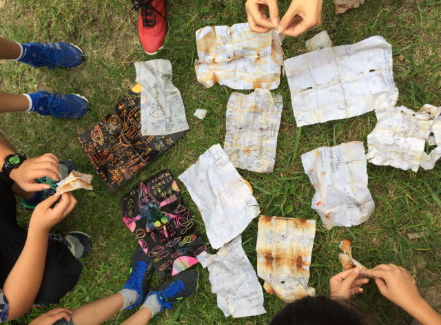 時間一點一滴的過去,我們的夢想石被搬開了,夏日的汗水浸透了大家伙兒的衣襟,終于看見當年的大鐵盒。