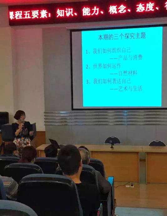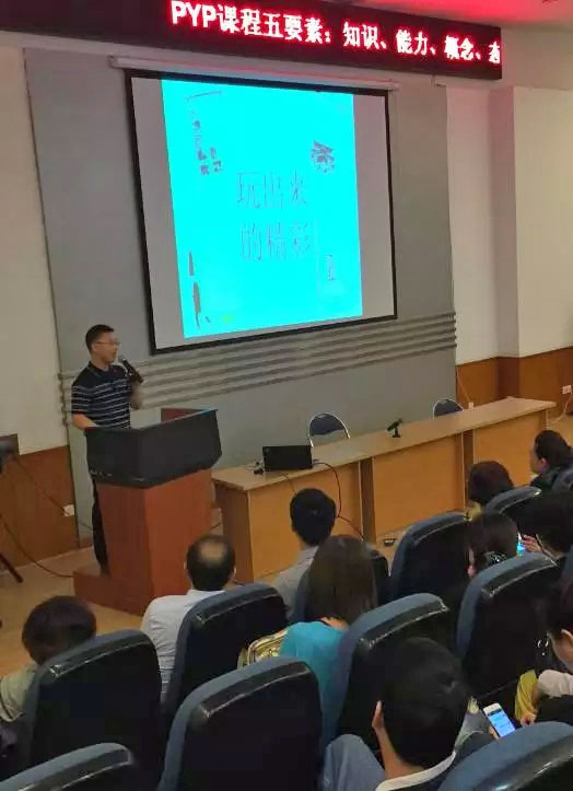 小學部副校長紀嵐老師以一貫干練的方式直奔PYP教育理念之核心,清晰地闡明了PYP課程五大要素——知識、能力、概念、態度、行動的意義、關系與實踐運用。