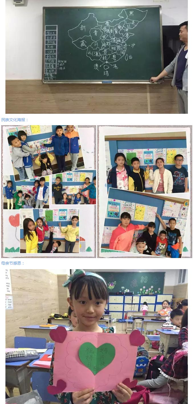 三年級的小伙伴們則開展著不同的探究分享會,看他們分小組匯報著民族文化,《假如只有三天光明》有感,他們的“特產會”別有滋味,他們還親手制作民族文化海報,還有的在家長課堂中感受著祖國廣袤的河山與大地,更有的班級積極開展感恩母親的活動,他們用自己的行動證明著優秀的習慣和學習中的點滴樂趣。