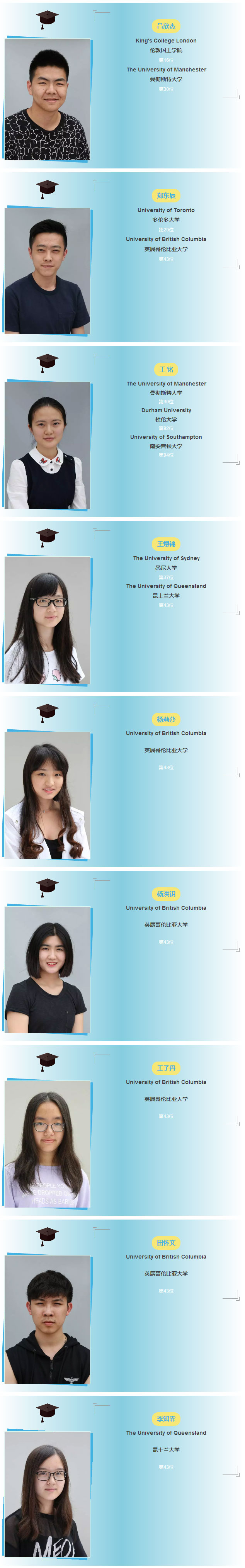 同年,從美視IB-DP畢業的21名學生當中,有9人被『世界排名前100位的大學』錄取。