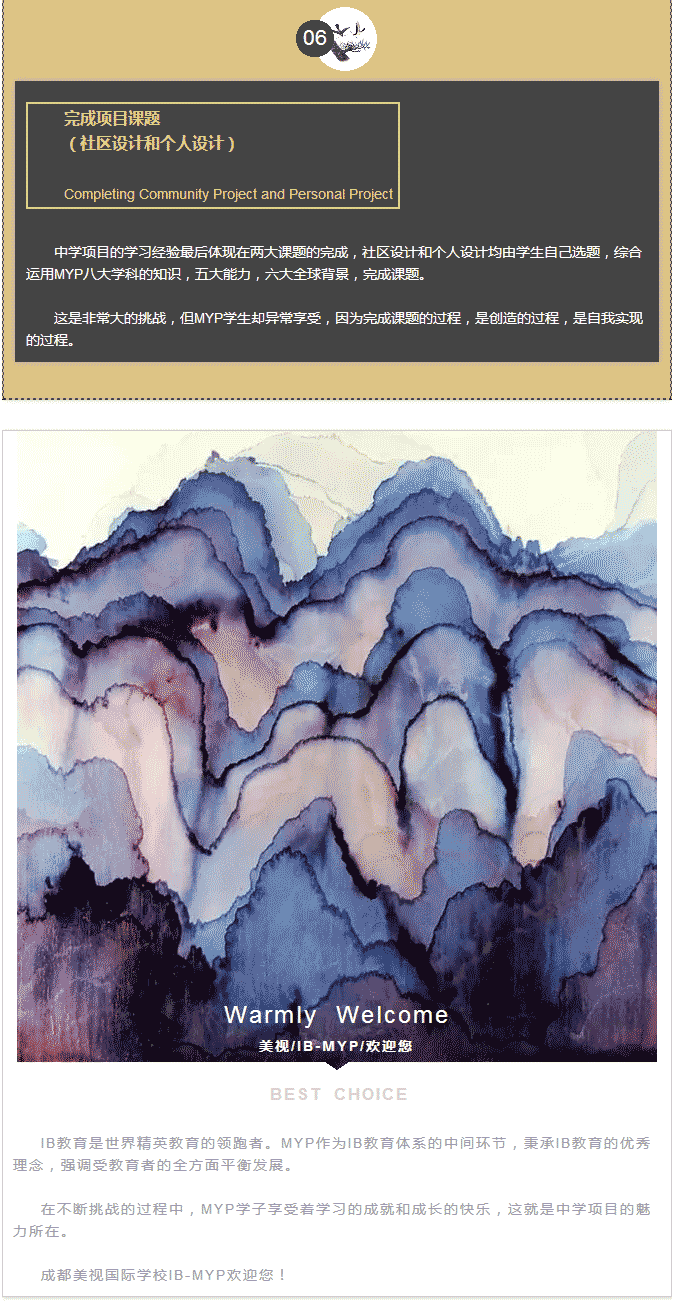 成都美視師一學校前身為成都美視學校,是成都市首批老牌民辦學校。學校于2002年經四川省教育廳批準投資建成,是一所從幼兒園至高中全學段的國家課程和融合教育雙軌制、K12、高品質、寄宿式的私立學校。辦學以來,學校一直堅持多元化教育,融合創新,取得了令人矚目的辦學成績,獲得了IB(國際文憑)授權,并通過了美國中部院校聯盟(MSA-CESS)、美國私立學校委員會(NCPAS)及認證國際(Ai)等世界領先教育機構的資格認證。同時,我們也獲得了美國大學理事會(College Board)授權開設AP課程,成為真正享有世界認可的國際學校。