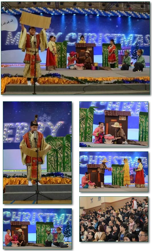 五年級的同學(xué)們把耶穌誕生記與中國傳統(tǒng)文化相結(jié)合,為大家?guī)砹艘怀鰟e出心裁的戲劇表演。