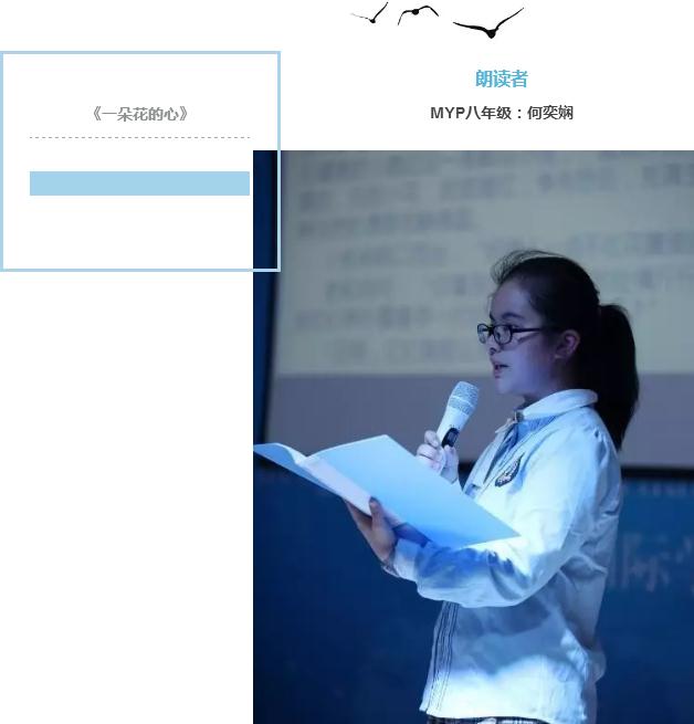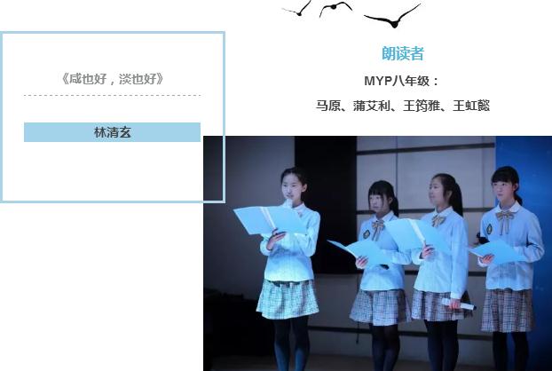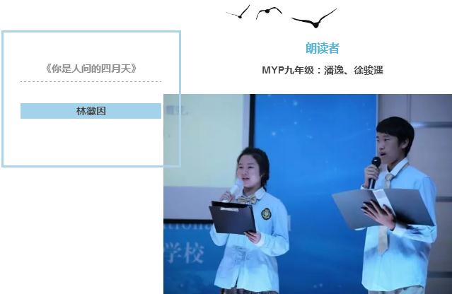 至此,三期MYP項目《美視朗讀者》已經圓滿落下帷幕。從老師到家長,到學生,難忘那一首首一篇篇,一聲聲一句句,還在這春意闌珊的校園蕩漾,從朗讀者口中,直到每個人心中,正是那最美的人間四月天。