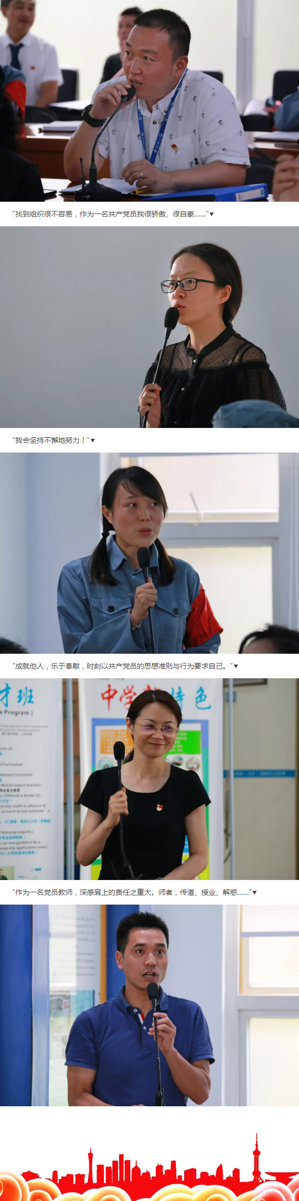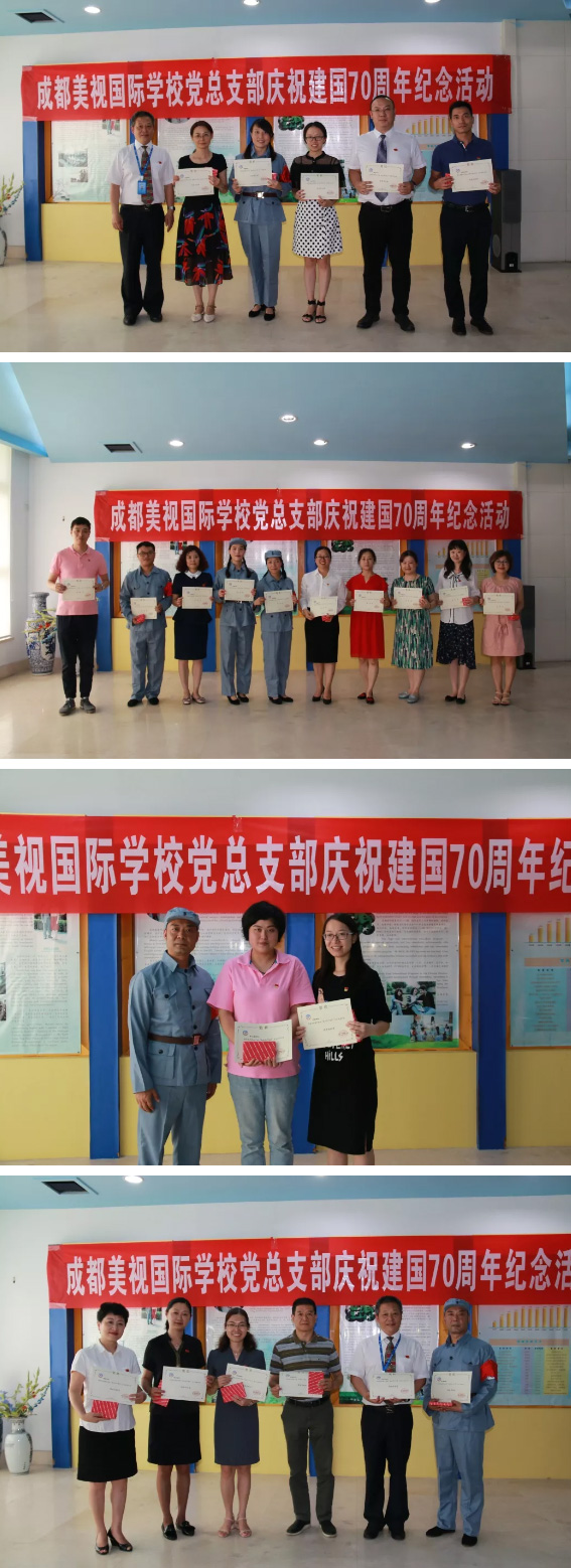 在這群黨員同志中,有的是不辭辛勞的校領導,有的是忙碌的一線教師,還有的是普通的行政職員。在建國70周年及建黨98周年來臨之際,大家齊聚一堂,以一顆共產黨員的心慶祝祖國和黨即將到來的生日。