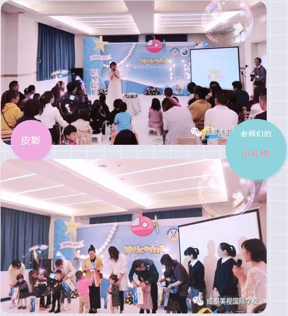 上午十點半,到場的家長和寶寶們整理好在戶外以及教室里玩游戲的道具后,來到了一樓的教室參加幼兒部試開園儀式。儀式上,老師們用手工制作皮影為孩子們展示了奇妙的海底世界,小寶貝們完全的沉浸在老師們的表演中,之后,每位小朋友還得到了幼兒部全體老師用心制作的小禮物。