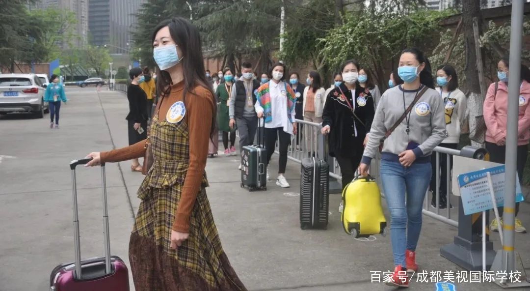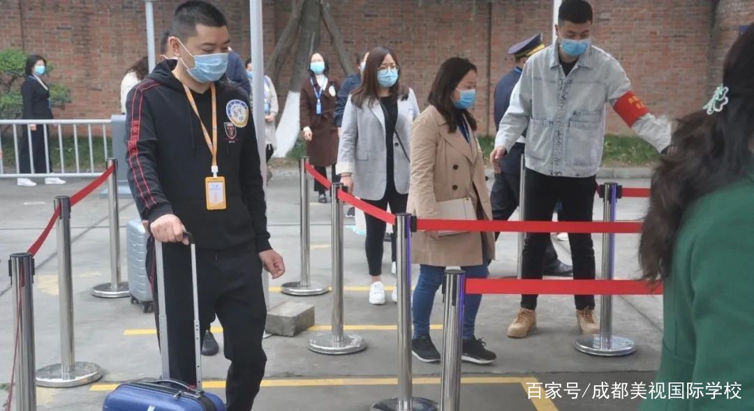 入校后,間隔有距的行進,安靜有序的列隊,進入寢室放置生活用品后,洗手消毒返回教室。