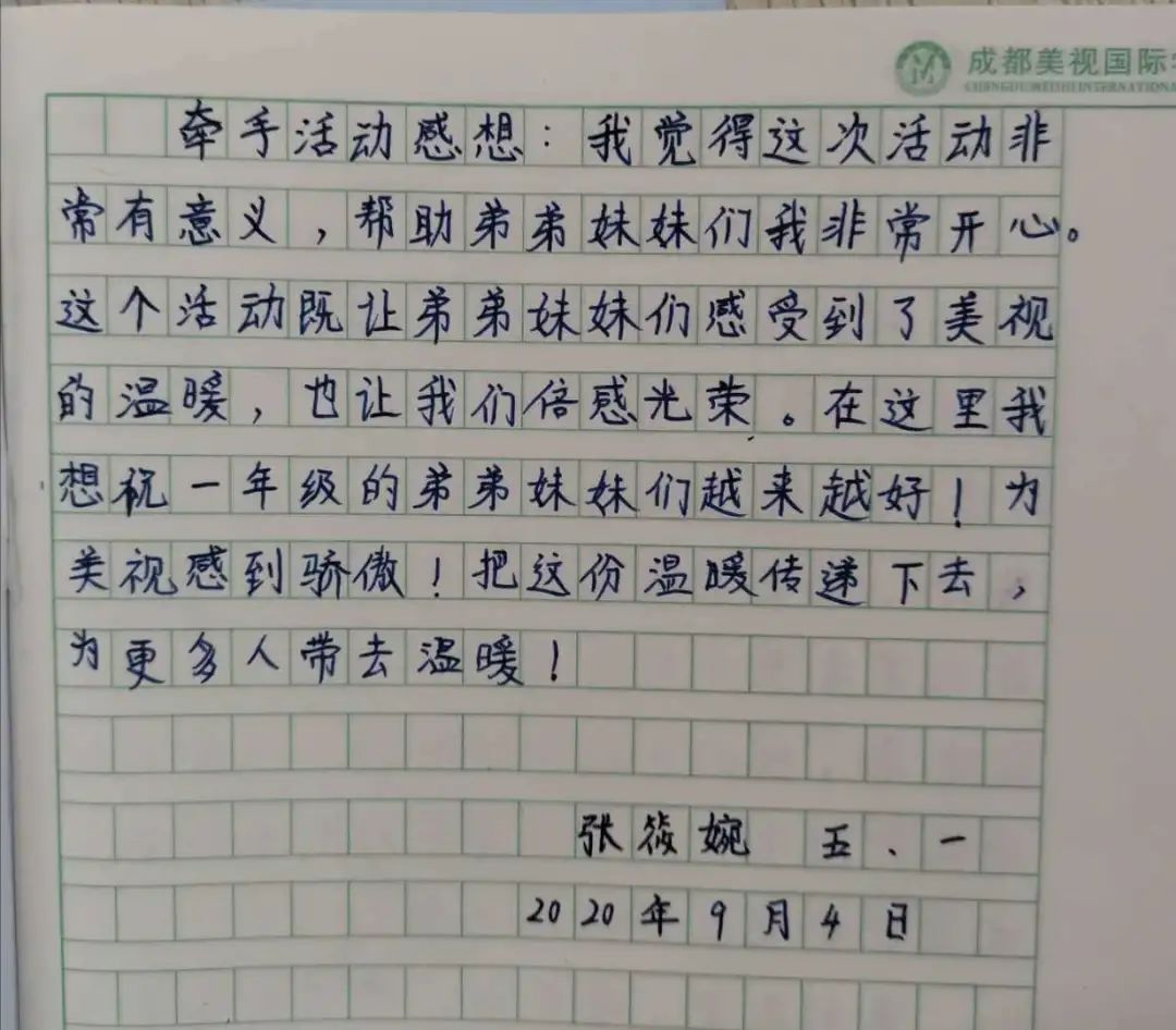在美視小學(xué)部,每個來到這個大家庭的小弟弟小妹妹們,都是幸福的。這里有老師們的愛,這里還有大哥哥大姐姐的溫暖行動。在活動中,哥哥姐姐關(guān)愛有加,弟弟妹妹文明有禮,我們都是最美的風(fēng)景。
