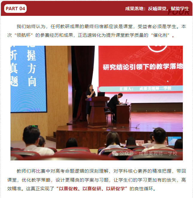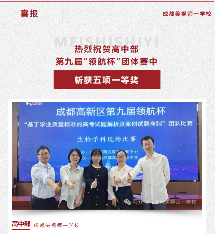 此次在成都高新區“領航杯”團體賽中的輝煌戰績,是美視師一高中教研之路上的一個閃亮坐標,但絕不是終點。它是對我們過去努力的肯定,更是對未來發展的鞭策。