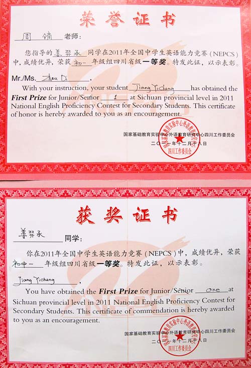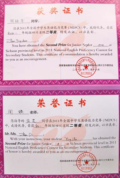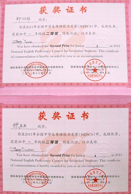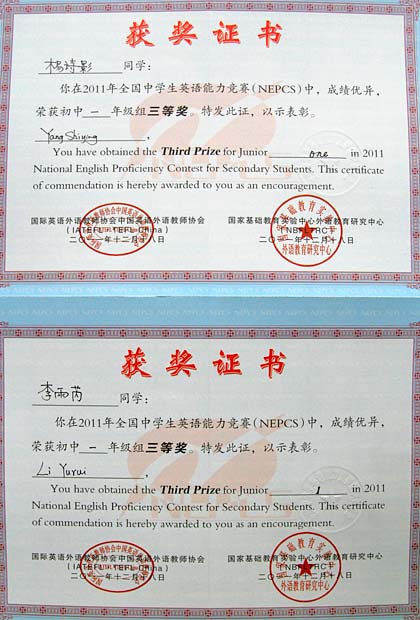 祝賀美視學子在全國中學生英語能力競賽中取得優異成績