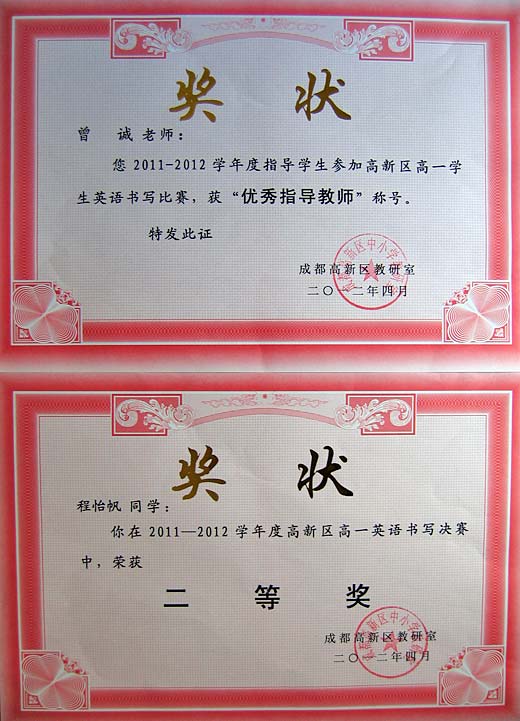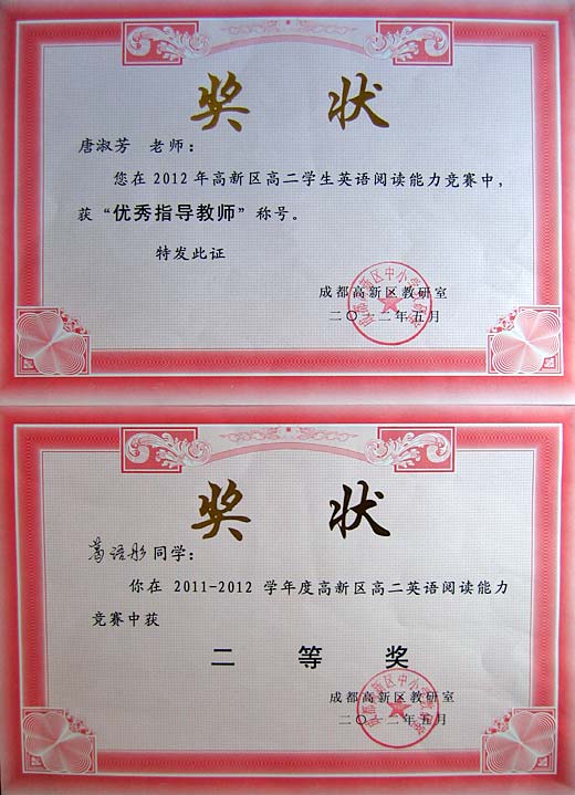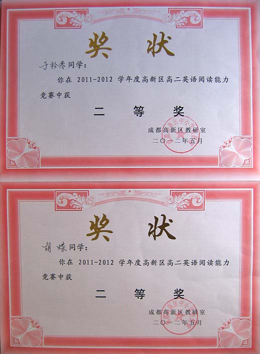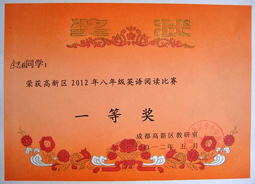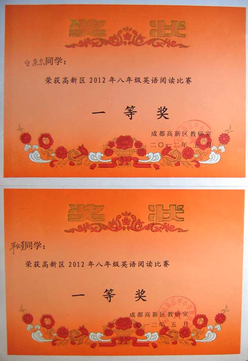 美視學子榮獲2012年高新區英語閱讀比賽一、二等獎