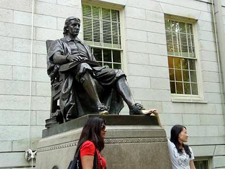 在接下來的7天,我們參觀了哈佛、麻省、耶魯三座大學,在這期間我始終處于一個時差狀態。其中耶魯給我是一種陽光的氣息,哈佛給我的印象最深,有一種古老神秘的氣息,哈佛整個校園都在綠色之中,關于哈佛有一個傳說:在校園中有一座塑料是一位對哈佛有巨大貢獻的人,相傳只要摸著他的“皮鞋”,在心中許愿就能成功,不要只是限于考上這所大學。