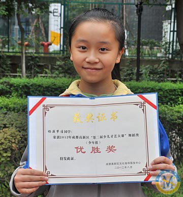 ▲ 楊源夢潔同學榮獲-成都市高新區“第二屆少兒才藝大賽”舞蹈類比賽優勝獎