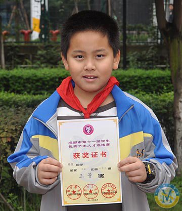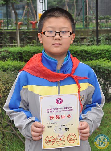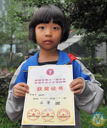 ▲ 張嘉洋同學-榮獲成都市第十一屆學生優秀藝術人才選拔賽語文表演比賽小學組二等獎