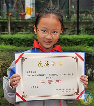 ▲ 呂嘉宜同學榮獲-成都市高新區“第二屆少兒才藝大賽”書法類比賽二等獎