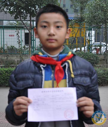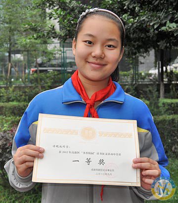 ▲ 譚硯池同學-榮獲2012高新區“書香校園”讀書征文活動一等獎