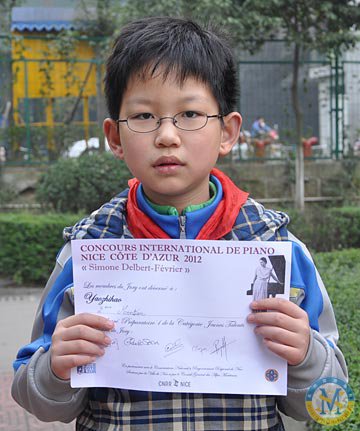 ▲ 姚智皓同學-榮獲2012法國國際鋼琴比賽小學組二等獎