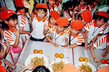 赴新學生參加當地風俗游戲