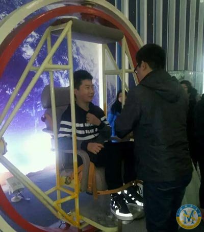 小伙子別緊張呀,放心體驗宇航員三維滾環,這可是有專人把控的額,絕對安全,relax啦!