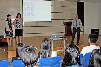 The University of British Columbia(UBC), established in 1908, is one of Canada’s leading research universities and is consistently ranked among the top 40 in the world. The university has two major campuses, Vancouver Campus and Okanagan Campus. The Director of International Admission of UBC visited CMIS in the afternoon on April 15, 2014. The director gave students a presentation of UBC at the Lecture Hall of International Program. UEI Elite Program students attended UBC’s presentation as well. She introduced UBC to students in aspects as its location, transportation, ranking, scale, facility, clubs, admission requirement, tuition and fees, financial and educational assistance with her cracking sense of humor. At the end of the meeting, some students raised a few questions, and the director answered them patiently. And UEI Elite Program students who are interested in UBC wrote down their names and telephone numbers on the tablet.