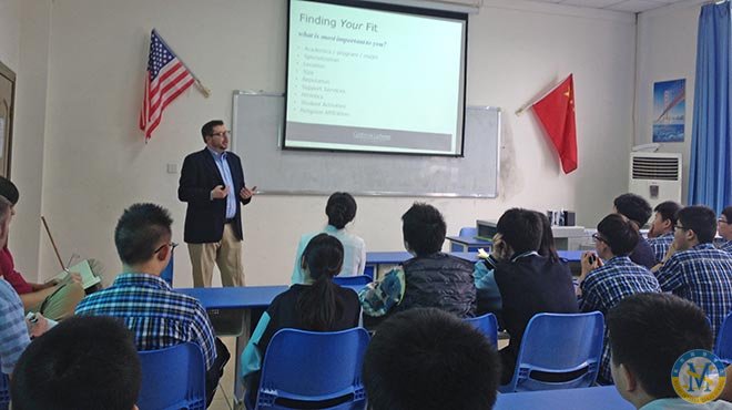 2015年4月21日早上10點,來自加州路德大學的校方代表來訪中美英才班。同時,給中美英才班高一同學講述如何去選擇一所適合自己的大學,怎樣去讓自己的申請更為突出,與此同時,也讓同學們對加州路德大學進行了詳細了解。