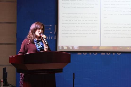 鐘山雨的媽媽作為學(xué)生家長(zhǎng)代表與大家分享了初來(lái)美視學(xué)校的心情以及看到其他同學(xué)們和自己的孩子在這里一點(diǎn)一滴的成長(zhǎng)而感到欣慰。她表達(dá)了對(duì)所有畢業(yè)生的祝愿,也表達(dá)了作為家長(zhǎng)對(duì)所有老師以及對(duì)美視學(xué)校的感謝!